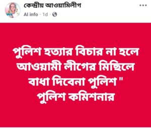 আবার কেন্দ্রীয় আওয়ামীলীগ নামক একটি নন-ভেরিফায়েড ফেসবুক পেজ থেকেও গুজবটি পোষ্ট করা হয়।